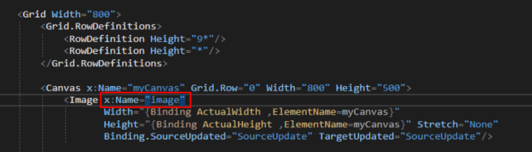 x:Name = "image"로 코드 비하인드와 연결하고