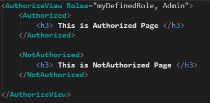 <AuthorizeView Roles="myDefinedRole, Admin, AdminAdmin">