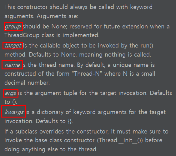 2. Threading.Thread 클래스 인자