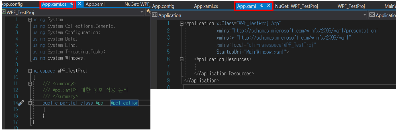 "App.xaml.cs"에서 상속받아 함수들을 Override 시켜준다.
